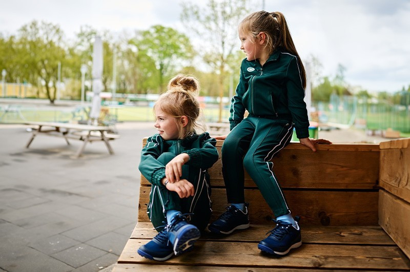 Kleding moet niet knellen in de taille of bij de schouders, maar ook niet te los hangen. Een lichte spanning bij stretchende stoffen is normaal en helpt bij de bewegingsvrijheid. Let ook op de lengte van rokjes en shorts zodat ze comfortabel blijven zitten tijdens rennen en slidings.